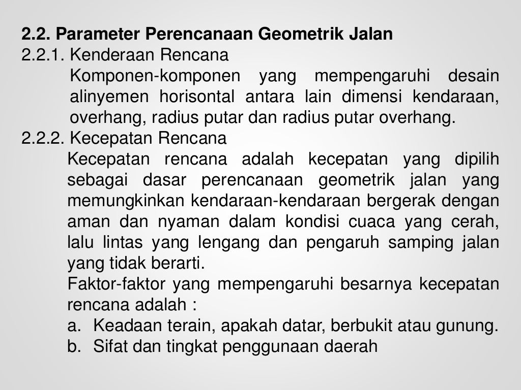Tinjauan Desain Geometrik Jalan Subaim Buli Ruas Jalan Sumber : www.slideshare.net